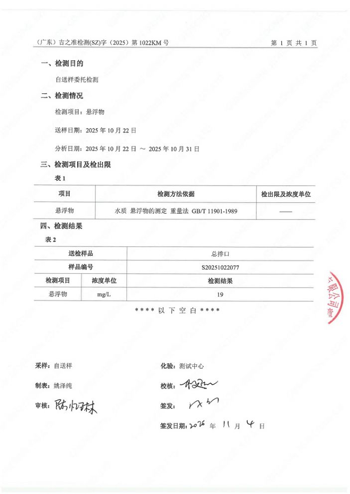 2025年10月檢測報告